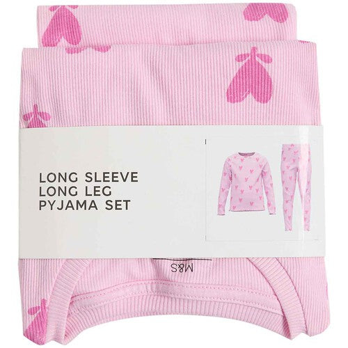 These cotton-rich pyjamas will make a charming addition to their nightwear collection. Cut to a comfy regular fit. Includes a long-sleeved top and a pair of full-length bottoms, both crafted from stretchy ribbed fabric. All-over print features hearts on stems for a playful look.