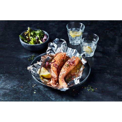 preheat oven. Dot with butter and season with salt and pepper. Wrap product loosely in foil. Place on a baking tray.; Shallow Fry - From Ambient. 10-12 mins