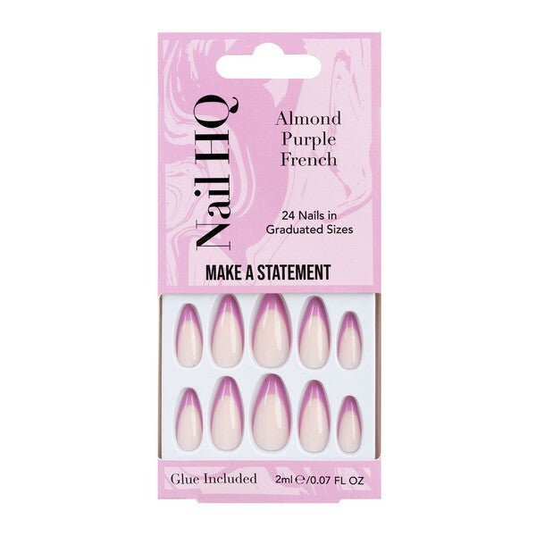 Achieve a classic spring look with these Almond Purple French Nails from Nail HQ. This set provides 24 high-quality artificial nails designed for easy application at home.