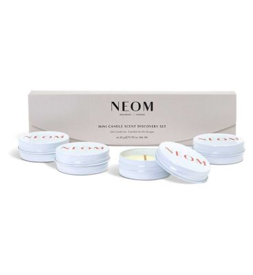 This NEOM discovery set offers four miniature candles featuring bestselling fragrances to suit various wellbeing needs. It functions as a perfect starter kit for exploring NEOM's aromatic profiles and finding your preferred scent experience. Each candle is formulated to deliver a specific mood or relaxation benefit.