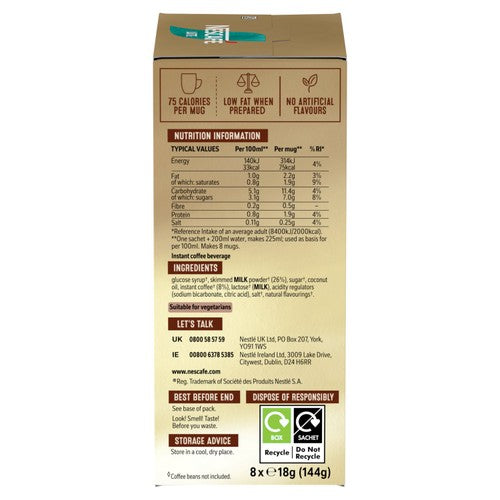 Nescafé Gold Latte offers a smooth and creamy coffee experience in convenient sachets. This delicious instant coffee is crafted from a blend of naturally sourced ingredients for exceptional taste.