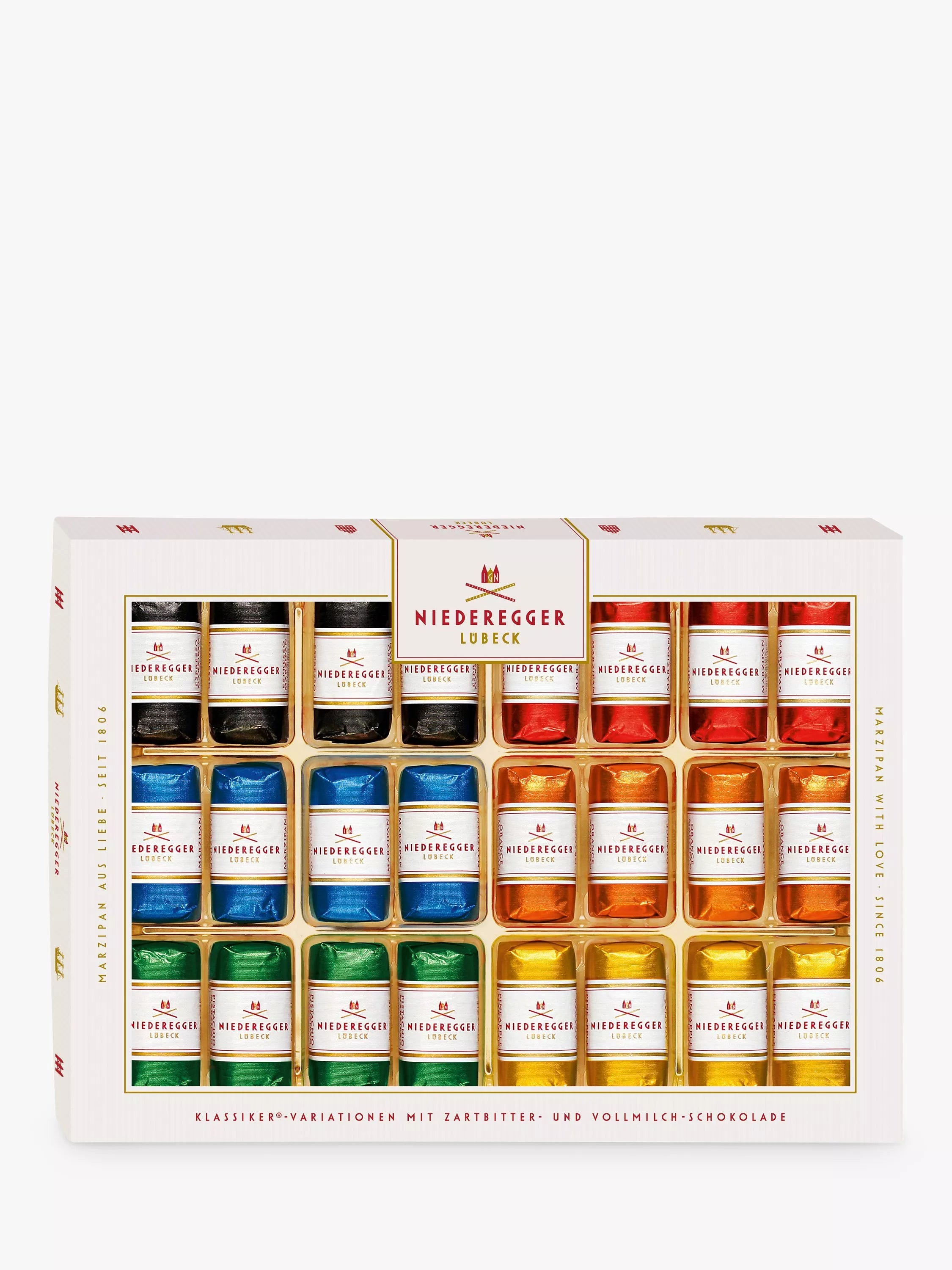 Bringing together a classic assortment of Niederegger mini loaves, this gift box includes six delicious flavours: espresso, milk chocolate, dark chocolate, orange, pineapple and pistachio. There are 24 pieces in total.