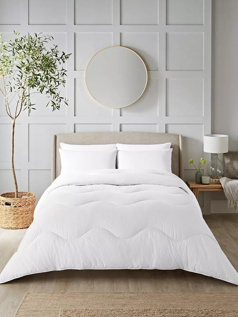 The soft Smartfil® filling is made from 100% recycled PET plastic bottles and it's both shape-retaining and ultra-washable. It's also quick-drying, so wash it at home and air or tumble dry it, and it will be back on your bed on the same day. This coverless duvet is designed with classic seersucker stripes, offering a stylish and versatile texture that will complement any bedroom.