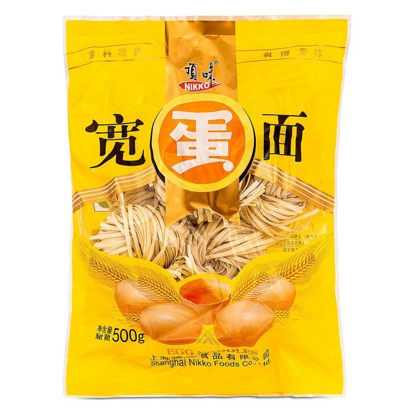 Nikko egg noodles are a great all-round noodle as they can be used in almost any Asian noodle dish whether fried or boiled. Often known as canton noodles, the noodles are first cooked before drying and then curling into tidy round nests. This pre-cooking means that the noodles are extremely quick to cook before serving. These egg noodles also work well in a Jewish chicken soup. To cook the noodles, boil vigorously for 3 minutes. If frying remove from heat, rinse with cool water and stir fry. Otherwise turn the heat down and cook until tender.