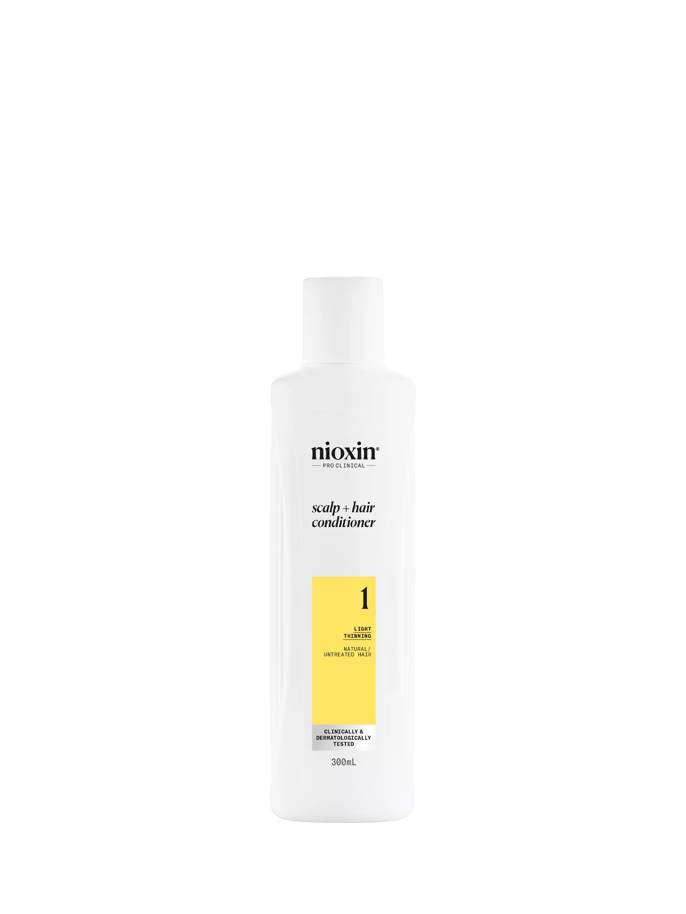 Nioxin System 1 Scalp + Hair Conditioner - Hair Thickening Conditioner for NATURAL hair with LIGHT thinning is designed for natural, untreated hair with light thinning. Clinically and dermatologically tested, this conditioner is designed to amplify hair texture and strengthen resilience, resulting in thicker, fuller hair.