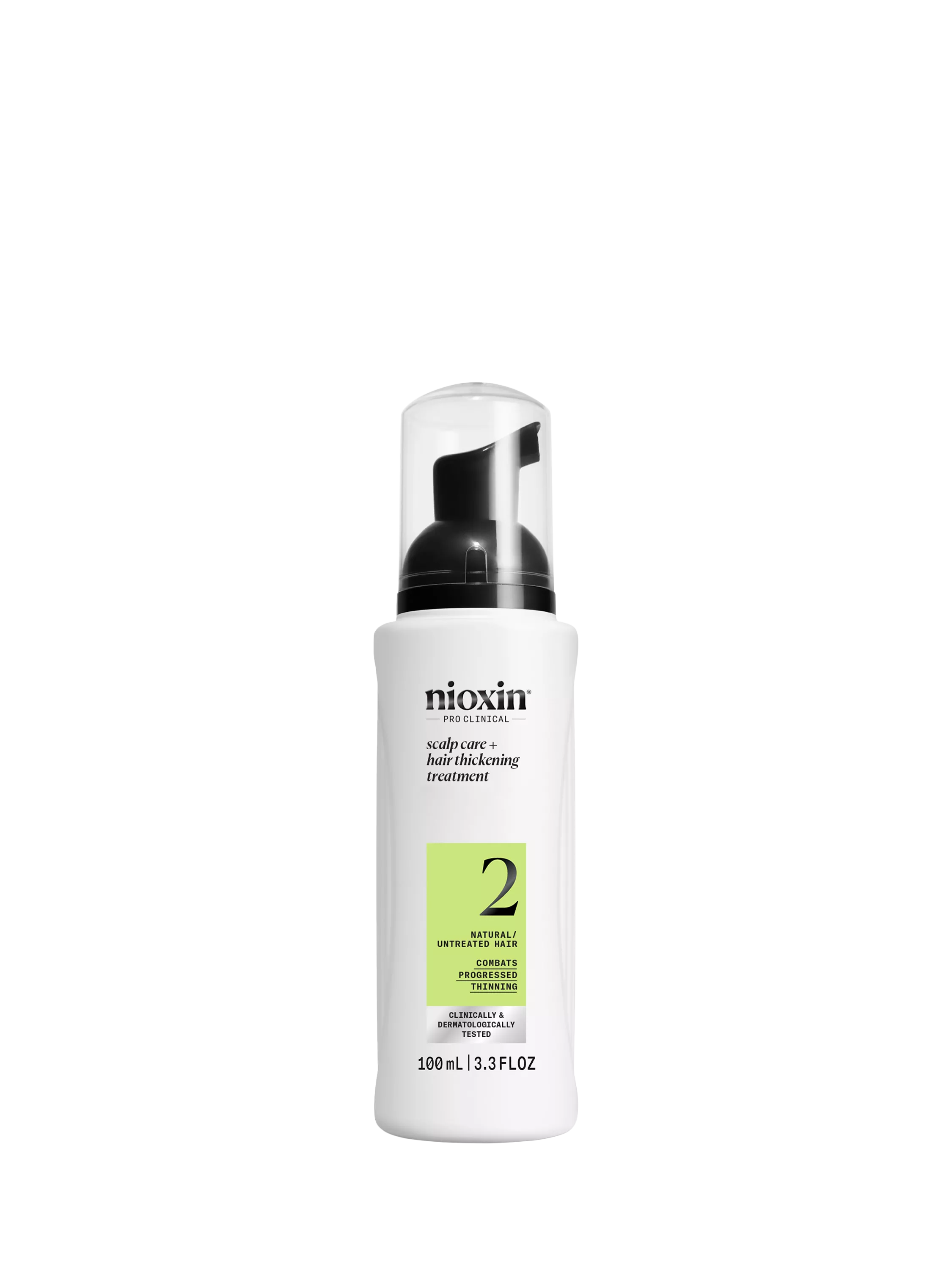 Nioxin Scalp + Hair Thickening System 2 Treatment - Serum for Natural Hair with Progressed Thinning is clinically and dermatologically tested.