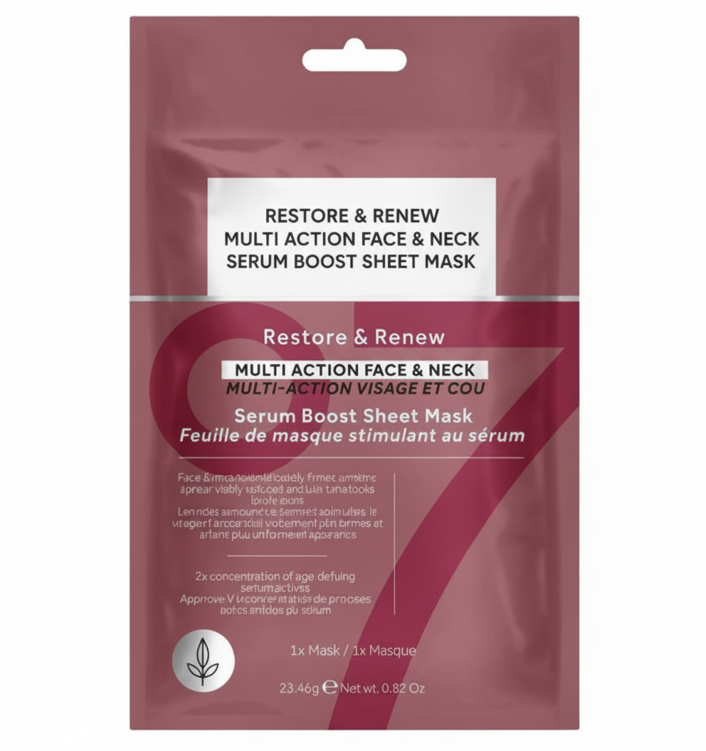 No 7 Restore Renew FACE NECK MULTI ACTION Serum Boost Sheet Mask