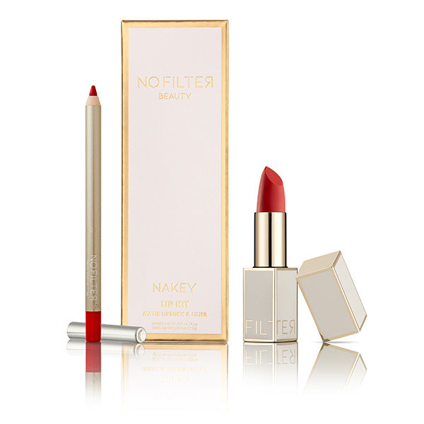The NO FILTER Lip Kit in 'Red Carpet' provides intensely pigmented colour for a flawless look. This curated set features a classic clean red lipstick designed to pair perfectly with the included precision lip liner.