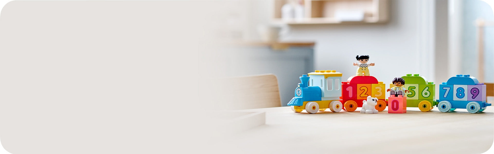 Catch the colorful LEGO® DUPLO® My First Number Train - Learn To Count (10954) toy for preschool kids and introduce toddlers to a world of counting and learning fun! This preschool kids’ counting train comes with 10 number bricks for toddlers to load, unload, stack and sort, plus girl and boy figures and a LEGO DUPLO dog for limitless play-and-learn opportunities.