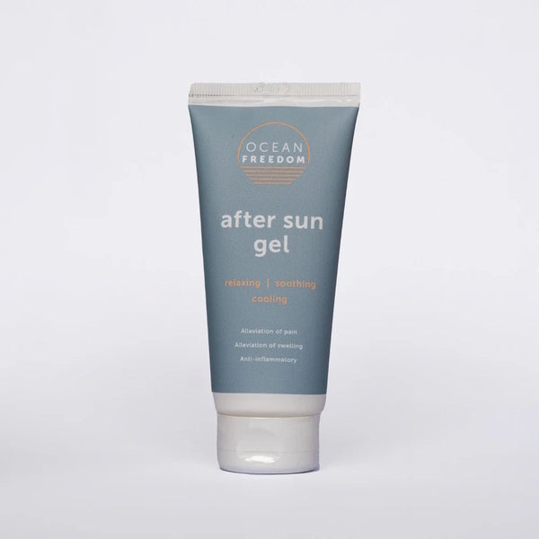 Size: 100ml Cooling relief for sunburn Replenishes moisture and hydration Contains aloe vera, lavender, and chamomile Fragrance-free, paraben- and sulphate-free Reef-safe and cruelty-free Ocean Freedom's After Sun Gel is designed to cool and soothe the skin after sun exposure. It contains natural ingredients like aloe vera, lavender, and chamomile to relieve sunburn, heat rash, or irritation. The gel helps restore moisture, keeping the skin hydrated and comfortable. Free from parabens, sulfates, and cruelty-free, it’s proudly made in South Africa.