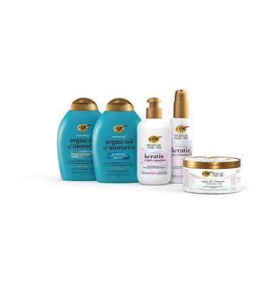 Unlock the secret to luxuriously soft and strong hair with the complete OGX Renewing Argan Oil of Morocco hair treatment bundle. This powerful set pairs a volumizing shampoo and conditioner with a deep-penetrating overnight serum, delivering consistent, visible repair with every use. Formulated with pure Argan Oil, rich in Vitamin E and antioxidants, these products work synergistically to deeply nourish dry, damaged strands.