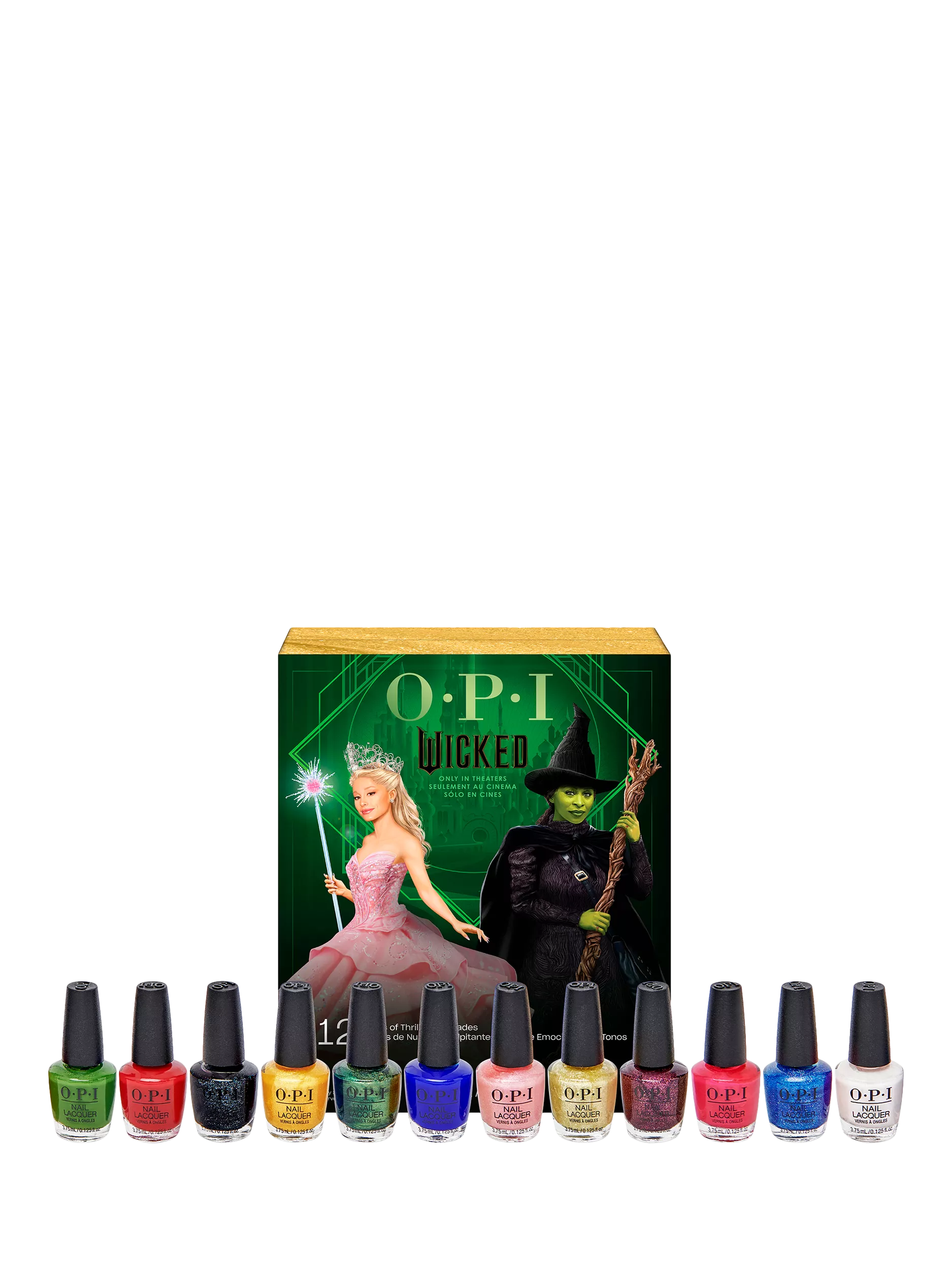 Unleash your inner Wicked with this enchanting 12-day nail polish advent calendar, featuring miniature bottles of OPI's exclusive Wicked-inspired shades. Each miniature lacquer offers vibrant color and long-lasting wear, perfect for adding a touch of magical flair to your holiday season. This limited-edition set is a delightful treat for yourself or a perfect gift for the nail polish enthusiast.