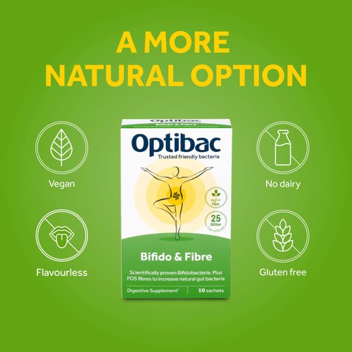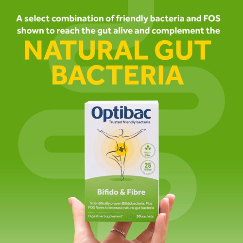 Read MoreOptibac Bifido & Fibre is especially for those seeking an expertly formulated friendly bacteria supplement with FOS for natural fibre. It contains Bifidobacterium lactis BB-12®, as well as 4g of FOS fibres (Fructooligosaccharides) which act as a source of natural fibre and increase your natural gut bacteria. EXTREMELY WELL RESEARCHED - Optibac Bifido & Fibre contains Bifidobacterium lactis BB-12®, which has seen extensive clinical research and is considered the world's most researched strain of Bifidobacteria, proven to reach the gut alive and complement the natural gut bacteria. HIGH IN FIBRE - A symbiotic formula with 4g of FOS fibres (Fructooligosaccharides), providing your suggested daily intake of fermentable fibre*, scientifically proven to increase gut bacteria. *The International Scientific Association of Probiotics & Prebiotics (ISAPP) suggests a minimum daily intake of 3-5g of fermentable fibre such as FOS A VEGAN, MORE NATURAL CHOICE - This digestive supplement is vegan and made using natural ingredients; free from artificial flavourings or colourings often found in other food & drinks containing live cultures; does not cause dependency. A GENTLE FORMULA - B. lactis BB-12® has been researched in and proven suitable for a wide range of life stages including childhood, pregnancy and older age. EASY-TO-TAKE, FLAVOURLESS SACHETS - This powder FOS and probiotic supplement can be taken daily or as required, mixed into cool, non-acidic food or drink, and requires no refrigeration. FROM THE UK & IRELAND’S MOST RECOMMENDED BRAND† - Optibac is the brand of friendly bacteria supplements most recommended by UK and Irish consumers. †See website T&Cs for survey details, 1,500 people, November 2024.