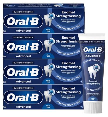 Read MoreOral-B Advanced Enamel Strengthening Clean Mint toothpaste is clinically proven; helps stop early-stage cavities starting from first use. Unique Anti-bacterial technology with Stannous Fluoride Complex creates a micro sealing protective layer to protect against mineral loss even in between brushings and actively rebuild tooth density.