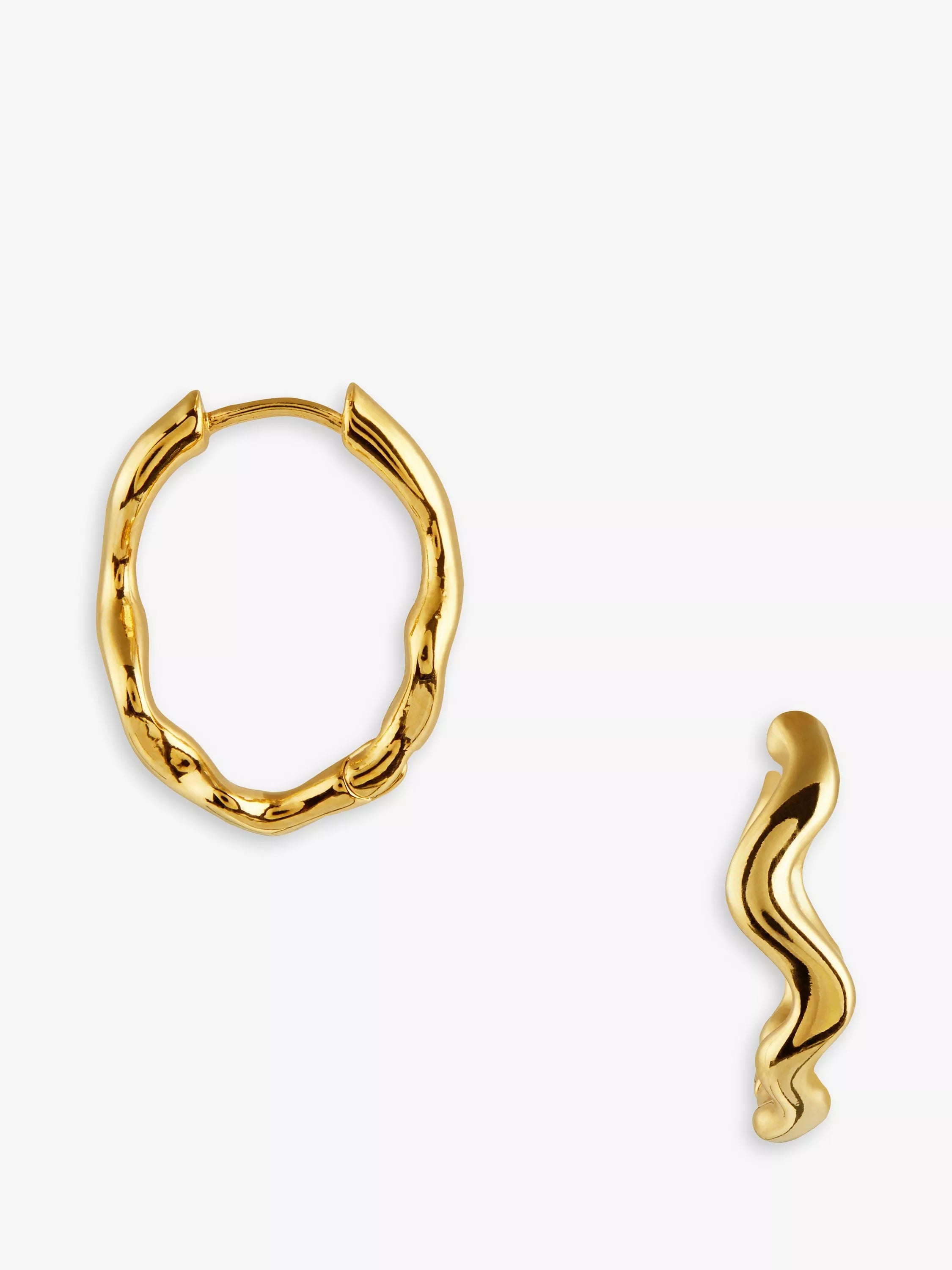 Play with shape with these Wave Oval Hoop Earrings in Gold. Featuring an oval shaped click clasp gold earring with a waving texture. 12mm inner diameter, 15mm outer diameter.