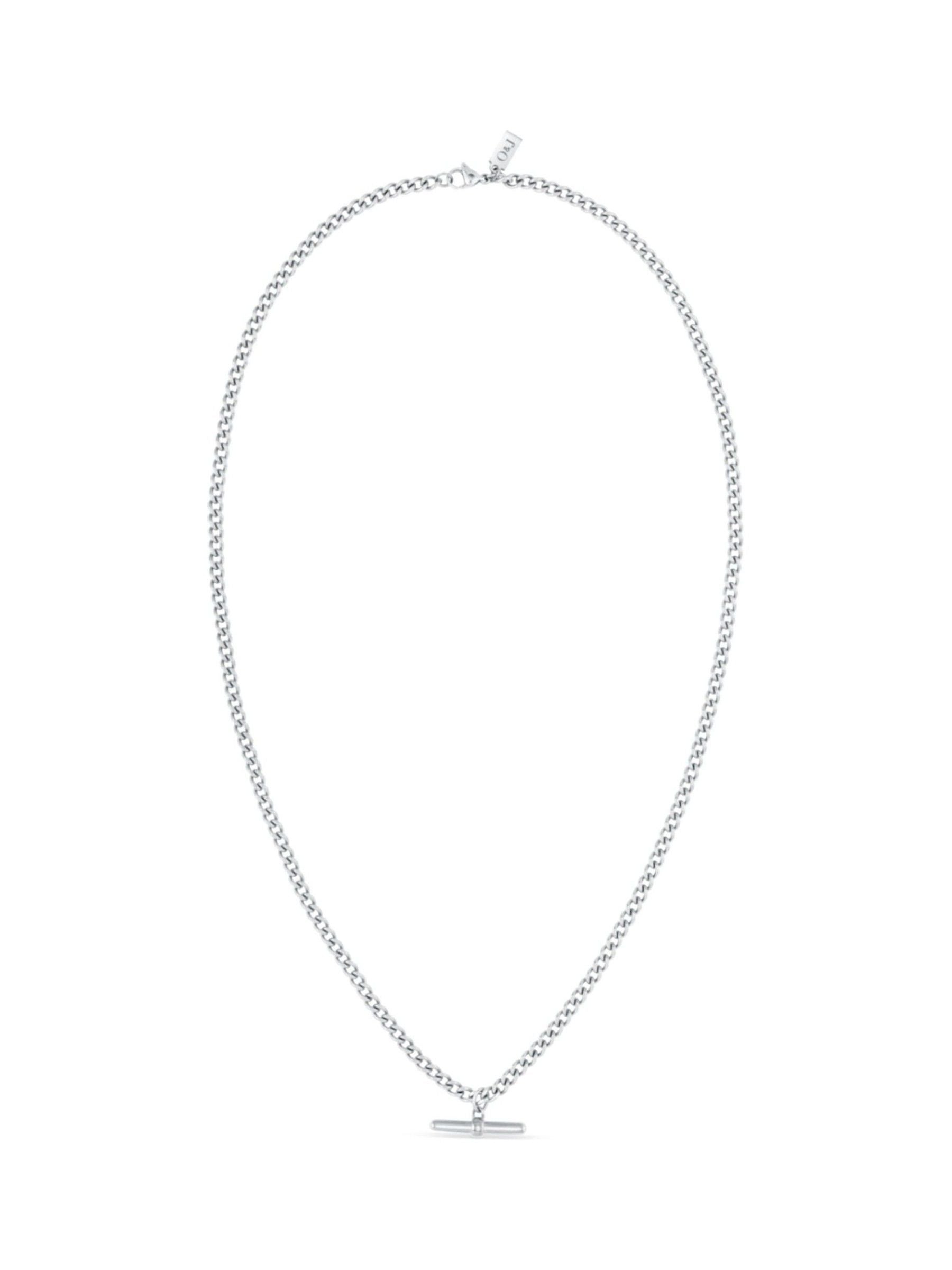 A curb chain necklace with a t-bar pendant from Orelia. Made from stainless steel, this style is waterproof.