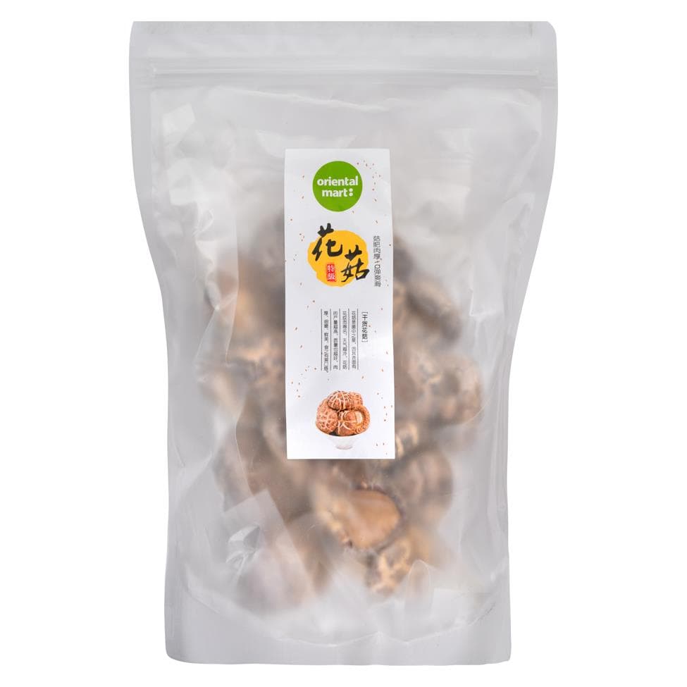 Orientalmart Dried Flower Shiitake Mushrooms are premium dried shiitake mushrooms known for their rich, savory flavor and distinctive floral appearance. These mushrooms are carefully dried to preserve their deep umami taste and meaty texture, making them perfect for enhancing soups, stews, stir-fries, and sauces. The \flower\ designation typically refers to their unique shape or specific variety, which adds visual appeal to dishes. To use, simply rehydrate them in warm water to restore their texture. These dried mushrooms are a versatile pantry staple, adding a luxurious depth of flavor to a wide range of culinary creations.