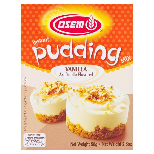 Osem Instant Pudding Vanilla Flavor provides a simple dessert solution requiring minimal preparation time. This 80g packet delivers the classic taste of vanilla in a convenient, artificially flavoured format. It is also certified Kosher (U Parve), making it suitable for specific dietary requirements.