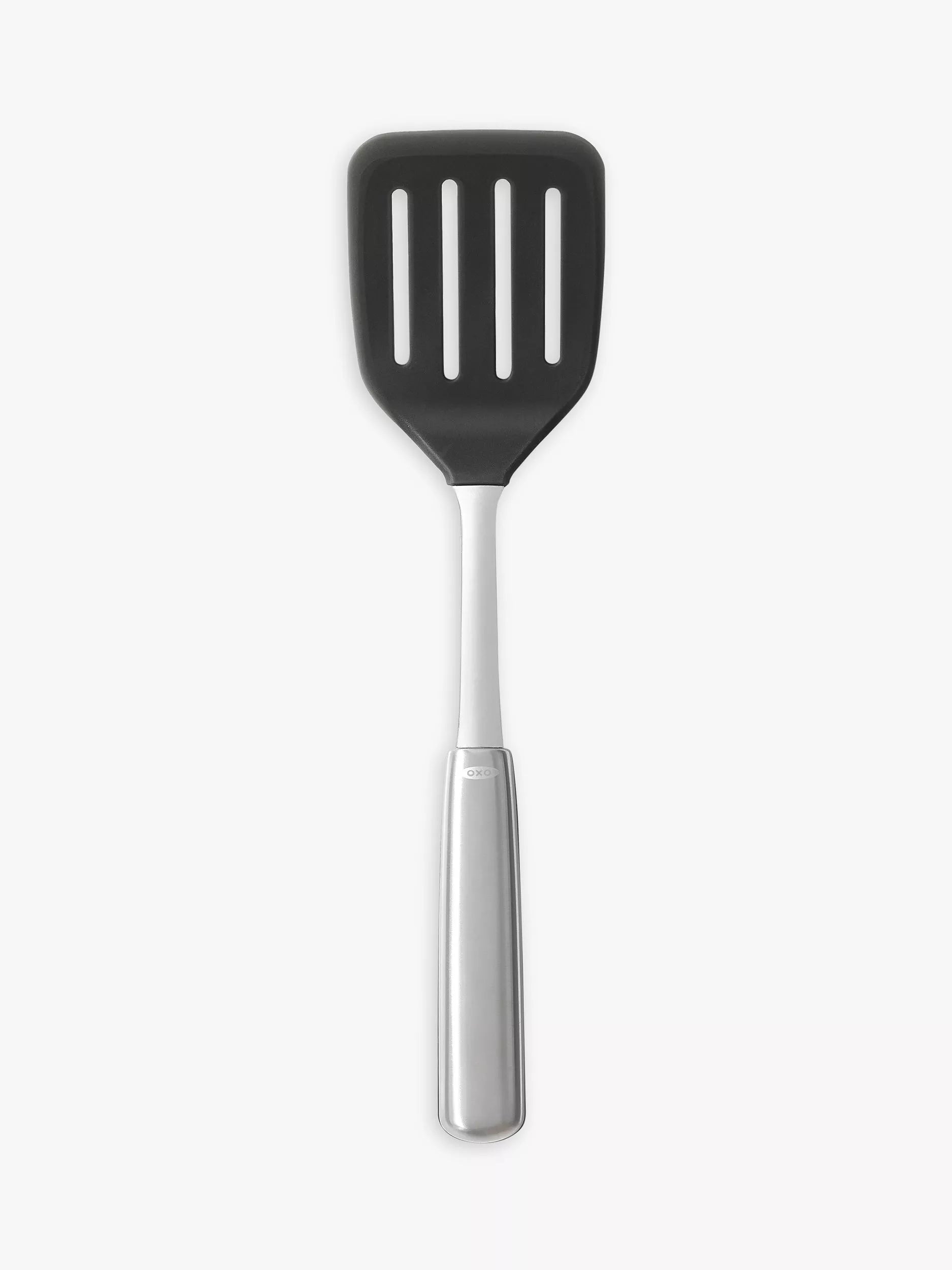 The single best thing you can do for a non-stick pan, whether it’s ceramic, cast iron or a traditional one, is pair it with the right tool. Which is where the OXO Steel Silicone Flexible Turner comes in. The head is made of heat-safe silicone that’s safe to use with all cookware and will not scratch non-stick surfaces. It’s flexible enough to easily slide under fragile foods (like eggs, pancakes, and crepes), but strong enough to support whatever you’re serving up, all the way from pan to plate. And the handle is shaped for comfort with non-slip touchpoints for extra security. Dishwasher safe.