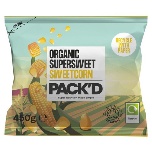 PACK'D Organic Super Sweet Sweetcorn offers simple, quality nutrition for your meals. These vegetables are picked and frozen on the day of harvest to ensure goodness is captured. This process provides convenience while minimising preparation time and kitchen waste for home use.