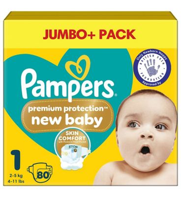• Jumbo pack containing 80 size 1 nappies (2kg-5kg).