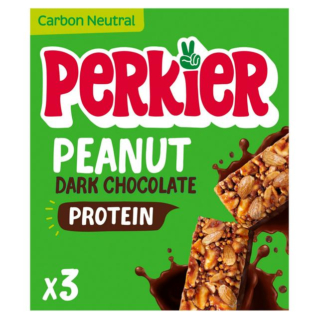 These Perkier Peanut & Almond Bars feature dark chocolate flavour in a convenient 3-pack format. They are formulated to be lower in sugar while offering significant nutritional support from added vitamins. Enjoy this protein and fibre-rich treat that fits several dietary requirements easily.