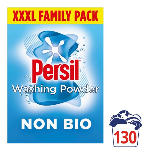Read MorePersil Non Bio Washing Powder XXXL Family Pack has been specifically developed to be gentle next to sensitive skin so you can get outstanding stain removal in cold washes. Our formulation is dermatologically tested by the British Skin Foundation, so you can be reassured that this laundry detergent is suitable for the whole family, especially those with sensitive skin. How to use: Always check the care labels on your garments before selecting the appropriate wash cycle and temperature and use the dosing instructions on the box. We recommend using a 50 g dose for medium soiling in medium-hard water. Choose the right wash setting and let your machine take care of the rest. If handwashing, you may want to use gloves. Avoid contact with eyes. If the product gets into your eyes, rinse thoroughly with water for several minutes. Avoid underfilling the machine, wash at low temperatures when possible and don't forget to recycle the box. Rinse hands after use. At Persil, we believe dirt is part of the game. Sweat, blood and mud will always be there. But so will we, first time and every time. Picking you up, dusting you down. Sending you back fresh and ready again. Leave your mark on the field. Play on.
