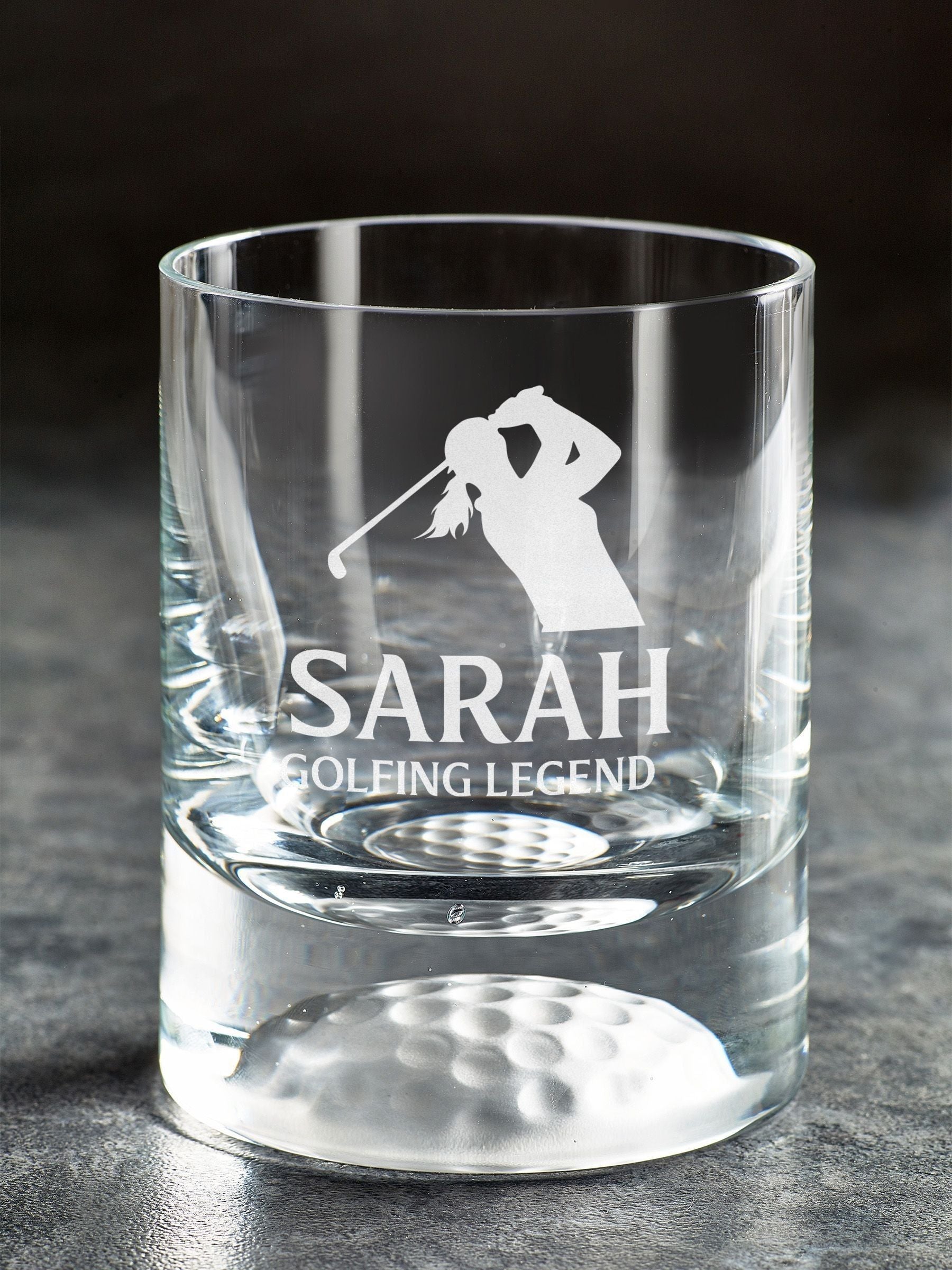 The golf ball engraving is a 3d carving on the underside of the glass, adding an impressive and distinctive appearance to the glass.