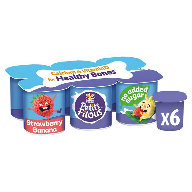 Petits Filous Kids No Added Sugar Strawberry Banana Yoghurt Pots 6x47g