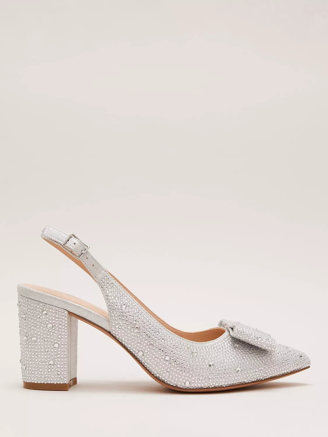 Phase Eight Silver Diamante Heels - 8cm Block Heel