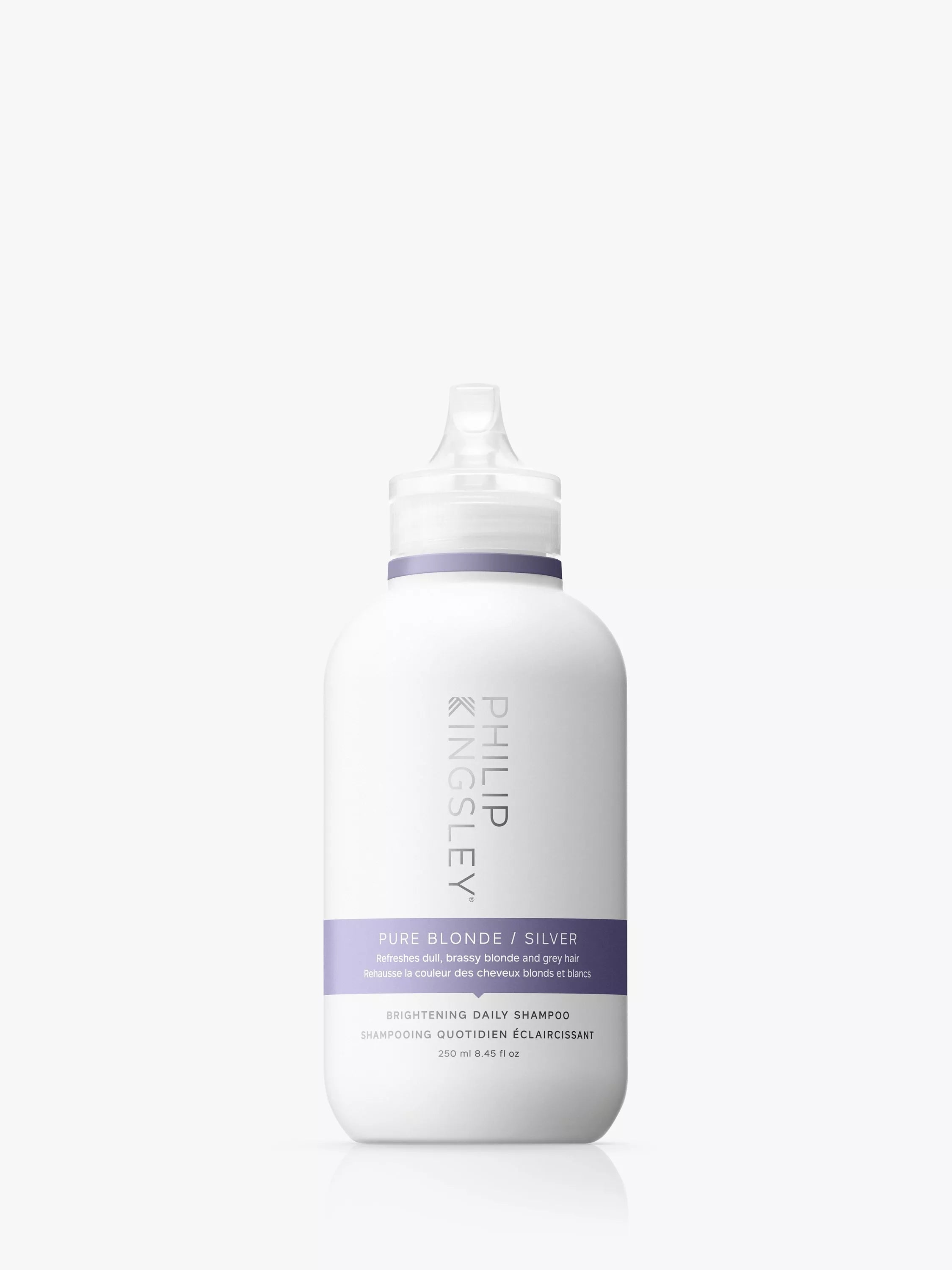 Pure Blonde/Silver Brightening Daily Shampoo cleanses and brightens blonde and grey hair, preventing and correcting brassiness and dullness.