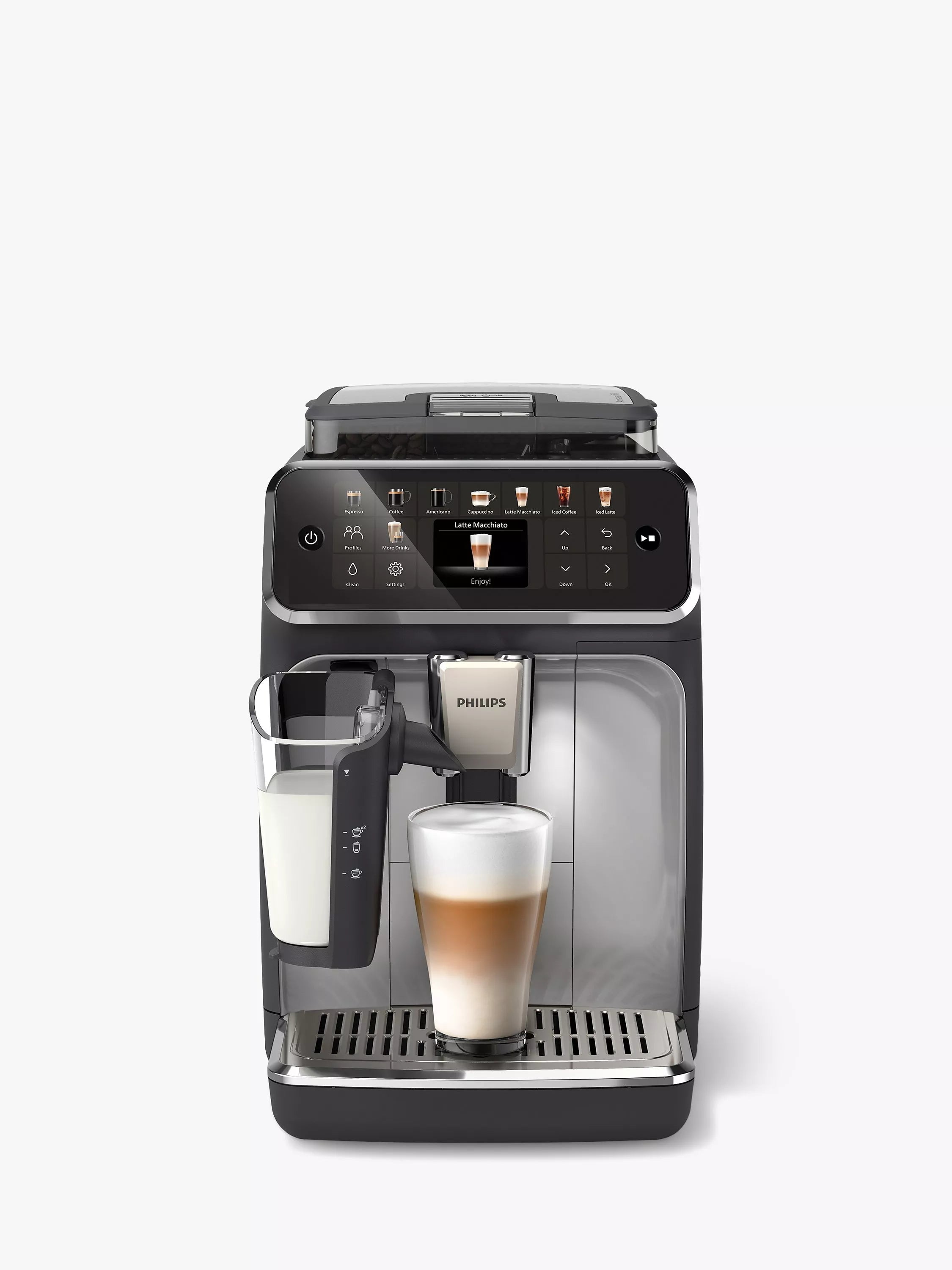 • LatteGo Milk System: Creates silky smooth froth with minimal cleanup.