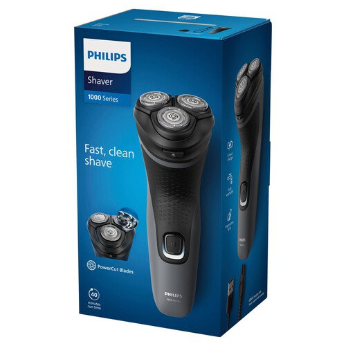The Philips Shaver 1000 Series delivers a fast, clean shave using its effective cutting system. It incorporates 27 self-sharpening PowerCut Blades crafted from surgical-grade hypoallergenic steel.