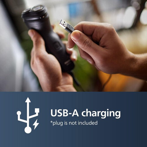 • A 40-minute charge provides up to 8 hours of cordless shaving time via convenient USB-A charging.