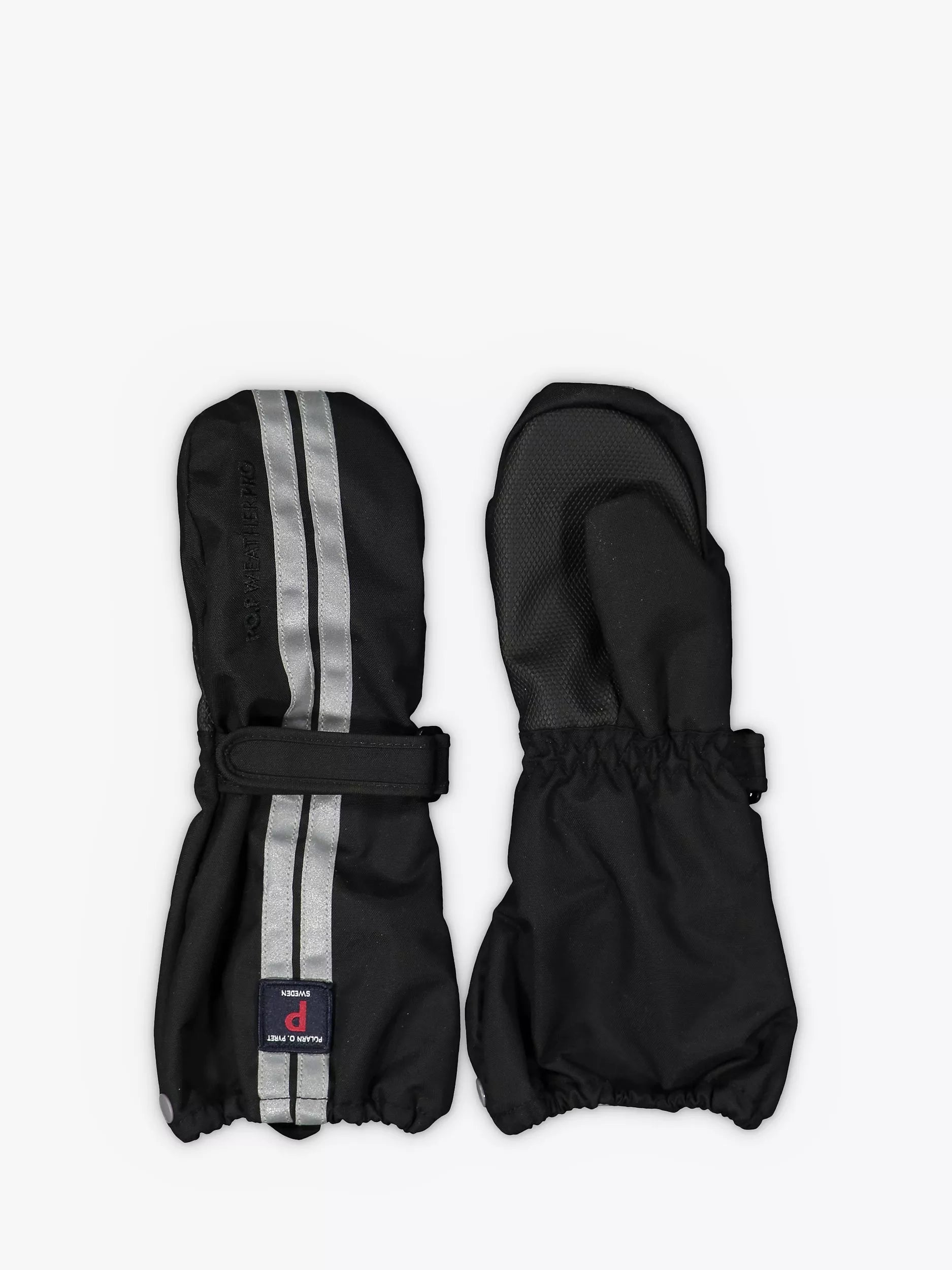 Windproof and waterproof shell mittens made of durable fabric with a pre-shaped fit for greater freedom of movement. The long, wide cuffs make the mittens easy to put on while the adjustable strap allows for a great fit while keeping them in place. The mittens have powerful reflectors and a grip-friendly surface on the palms.