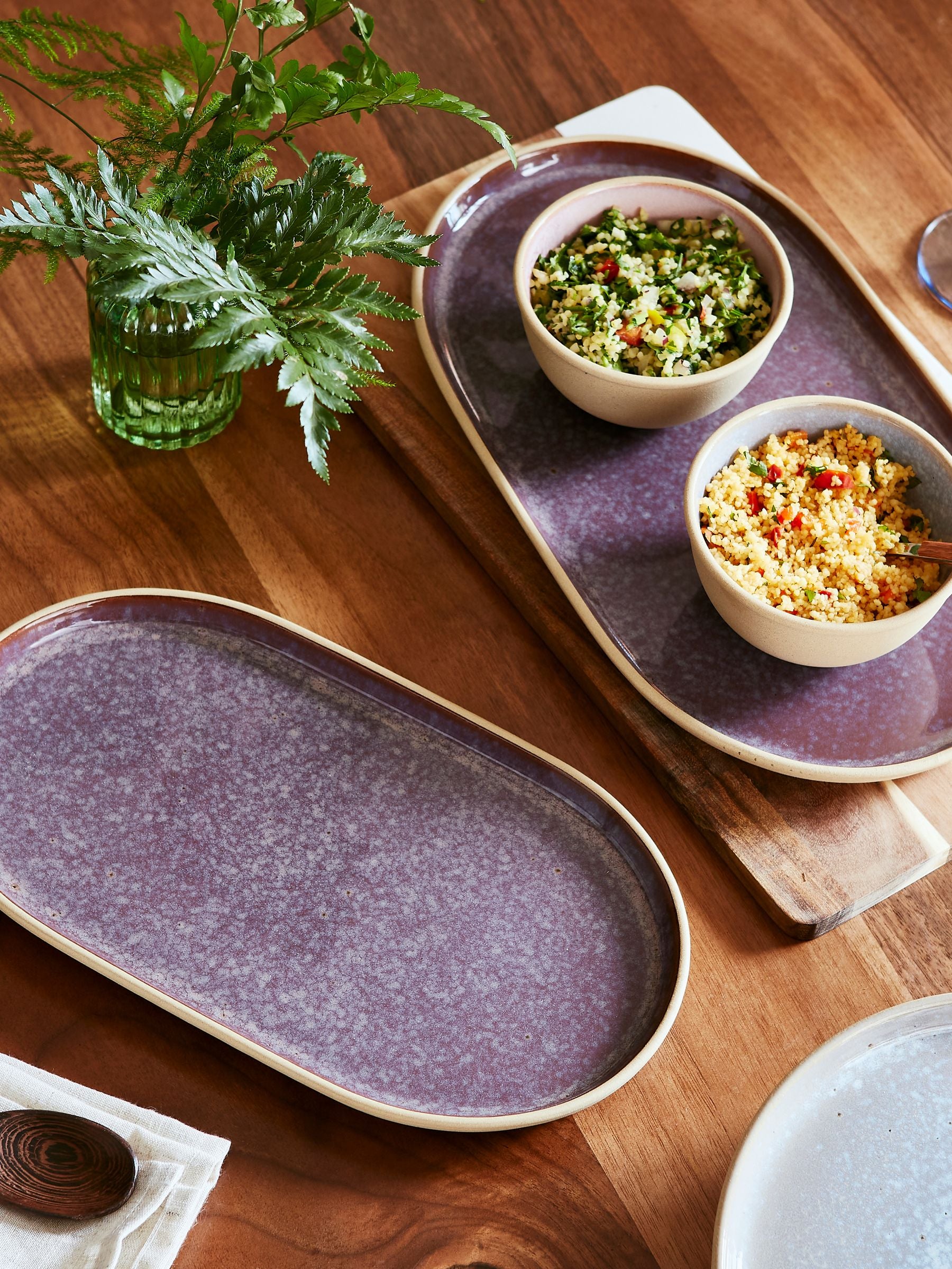 This stoneware Medium Oval Platter from Portmeirion makes every occasion feel special. Made from clay, a reactive glaze in a deep purple shade washes over the inside of the platter leaving the outside textured and creating a unique piece for the home. Beautifully presented in packaging. Read More