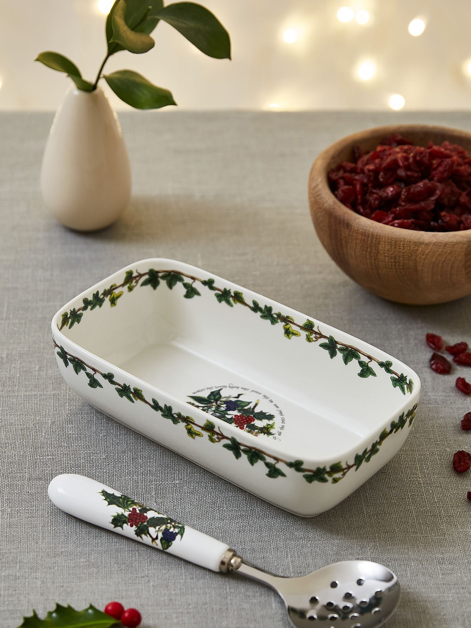 Portmeirion White Holly & Ivy Cranberry Dish And Slotted Spoon