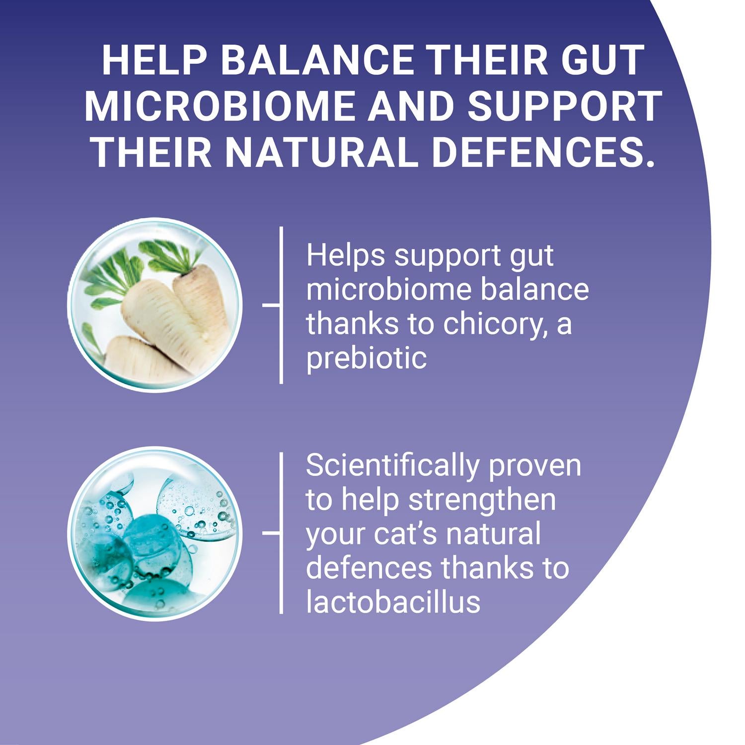 • Contains lactobacillus, specific functional bacteria that strengthen your cat’s natural defences.