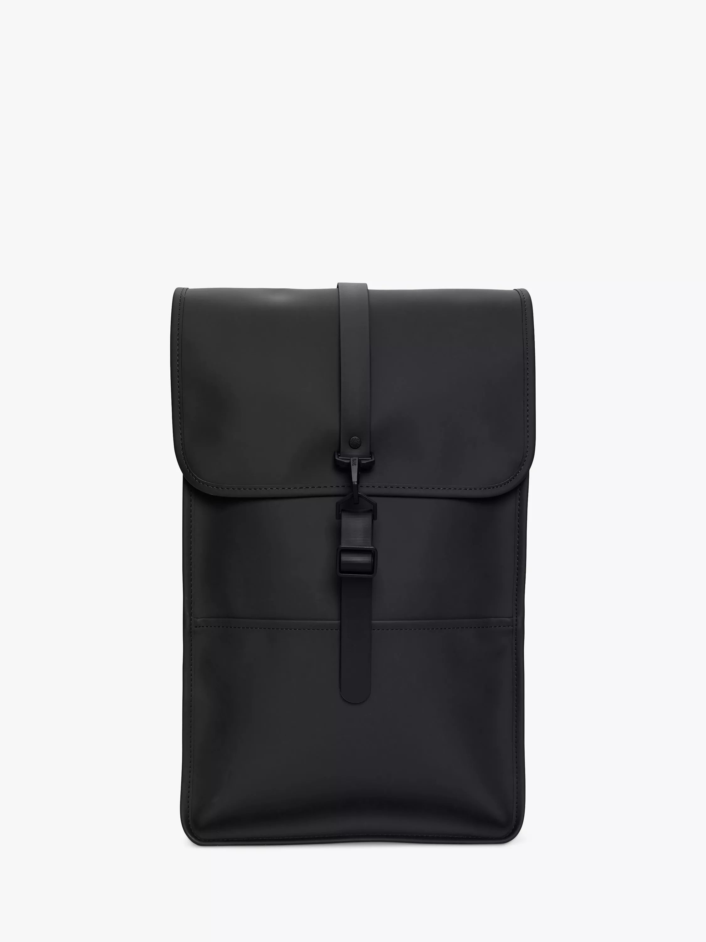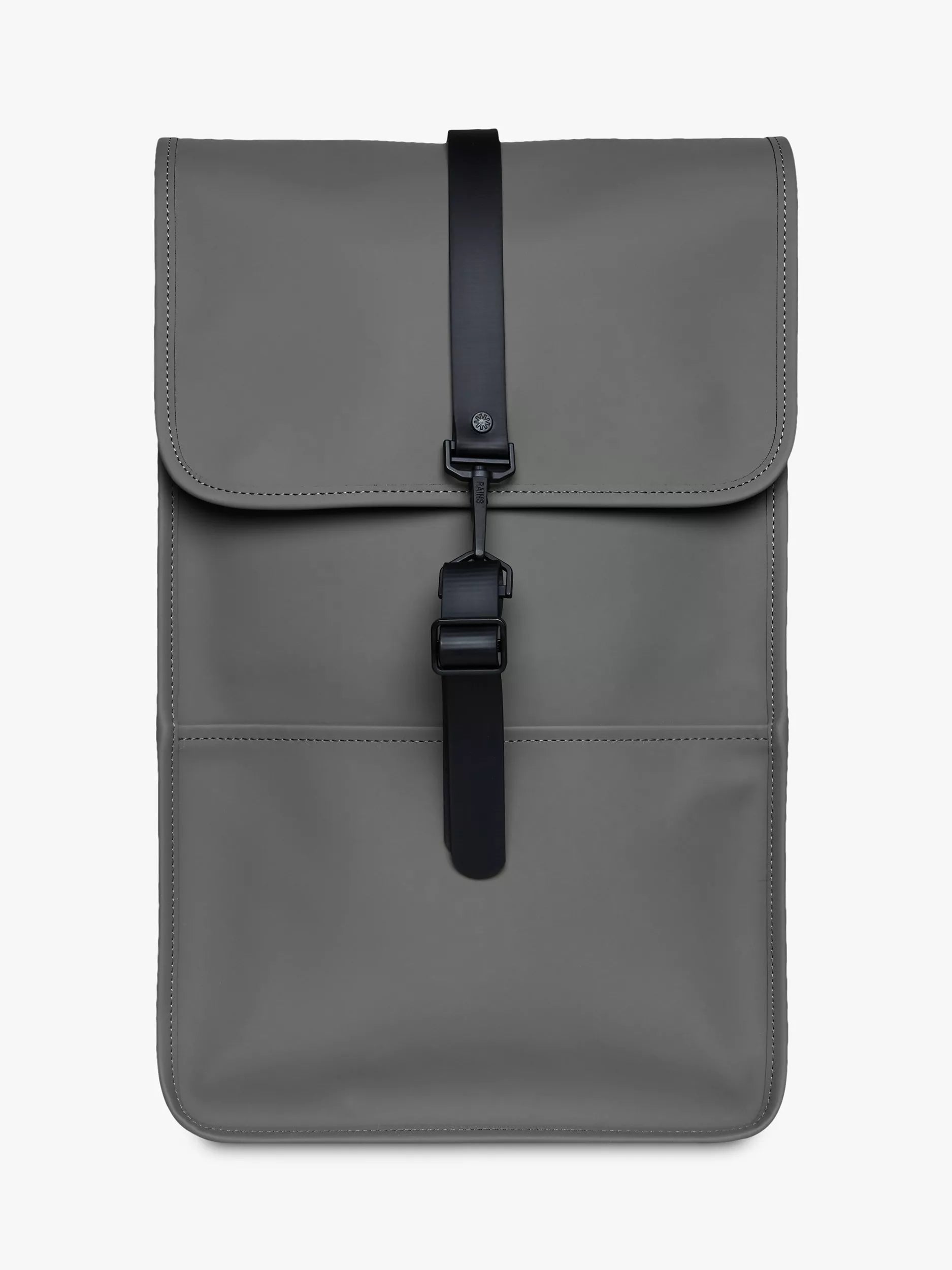The Backpack silhouette is a Rains classic, characterized by its prominent flap and central strap with carabiner closure. This clean and ever-contemporary water-resistant rucksack features an internal laptop pocket, a spacious main compartment, and a concealed external phone pocket on the back panel.