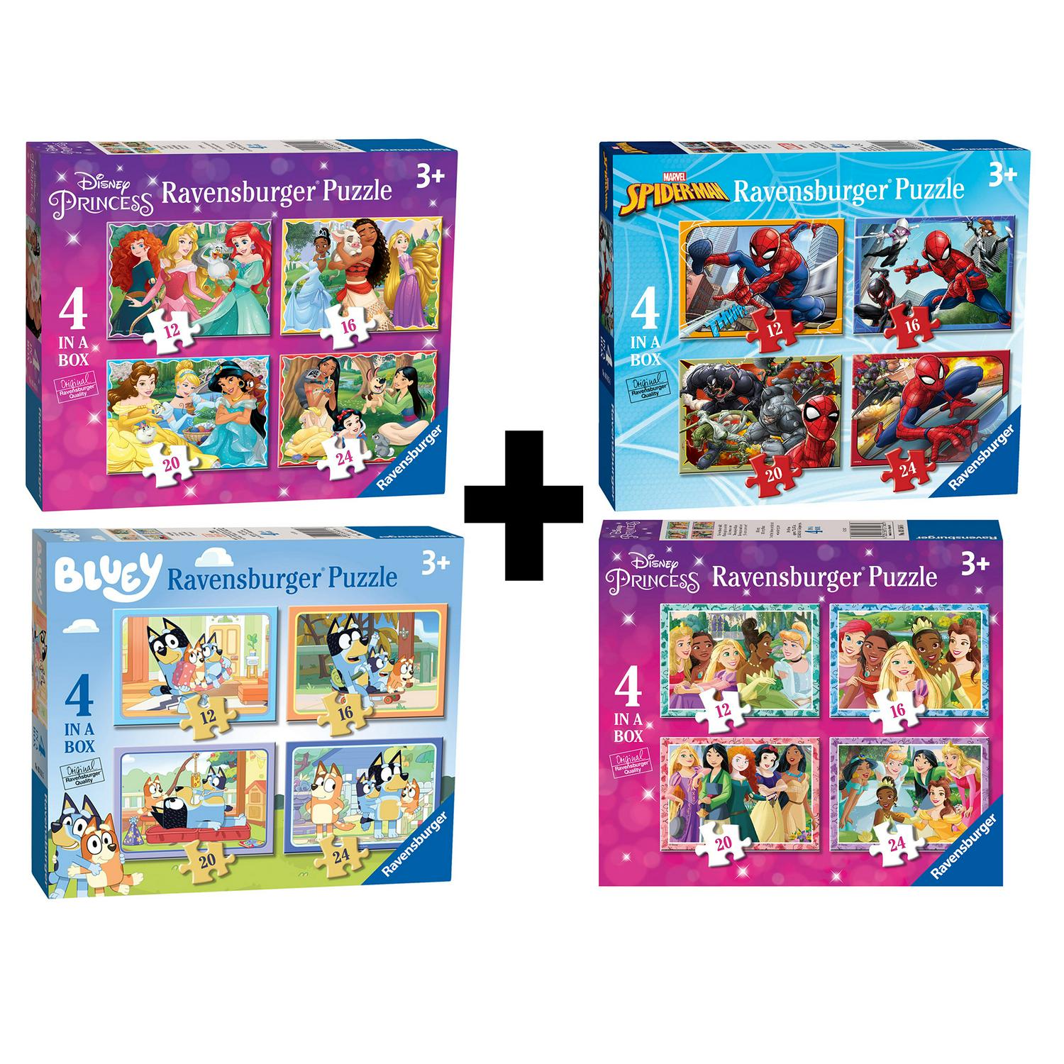 This Ravensburger assortment provides four engaging puzzles for growing minds, featuring piece counts of 12, 16, 20, and 24 pieces. These high-quality kids jigsaw puzzles are manufactured by the world's bestselling puzzle brand and are designed to support early child development through play. Each finished puzzle measures 19 x 14cm, offering an appropriate challenge for young puzzlers.