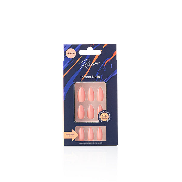 Achieve a polished, contemporary manicure instantly with these Rawr Beauty stick on nails in a chic glossy taupe finish. The set features a fashionable stiletto shape, offering a dramatic and elegant look without the drying time of traditional polish. These ready-to-wear nails provide a quick cosmetic enhancement for any occasion.