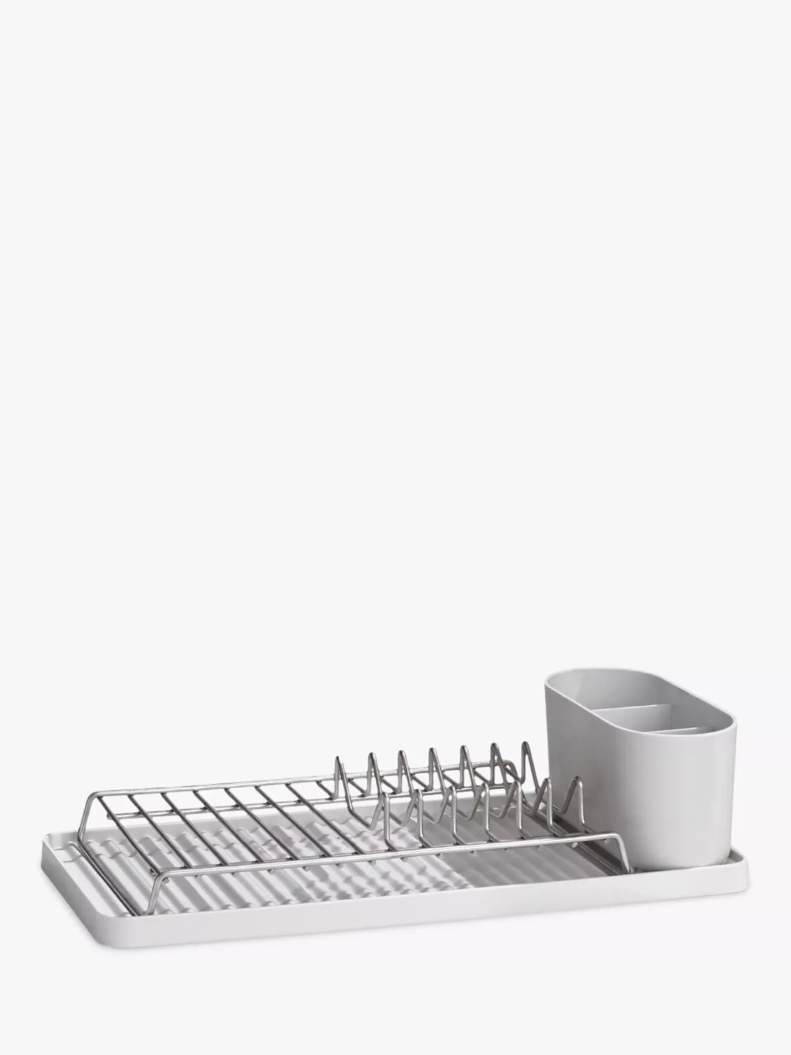 Elegant and space-efficient, this compact dish rack from ReBorn is great if you have limited space. It holds up to six dinner plates and is also suitable for glassware, cups and cutlery. The removable cutlery basket has draining holes. The cutlery pot and metal rack and can be removed to create space for larger pans and items.