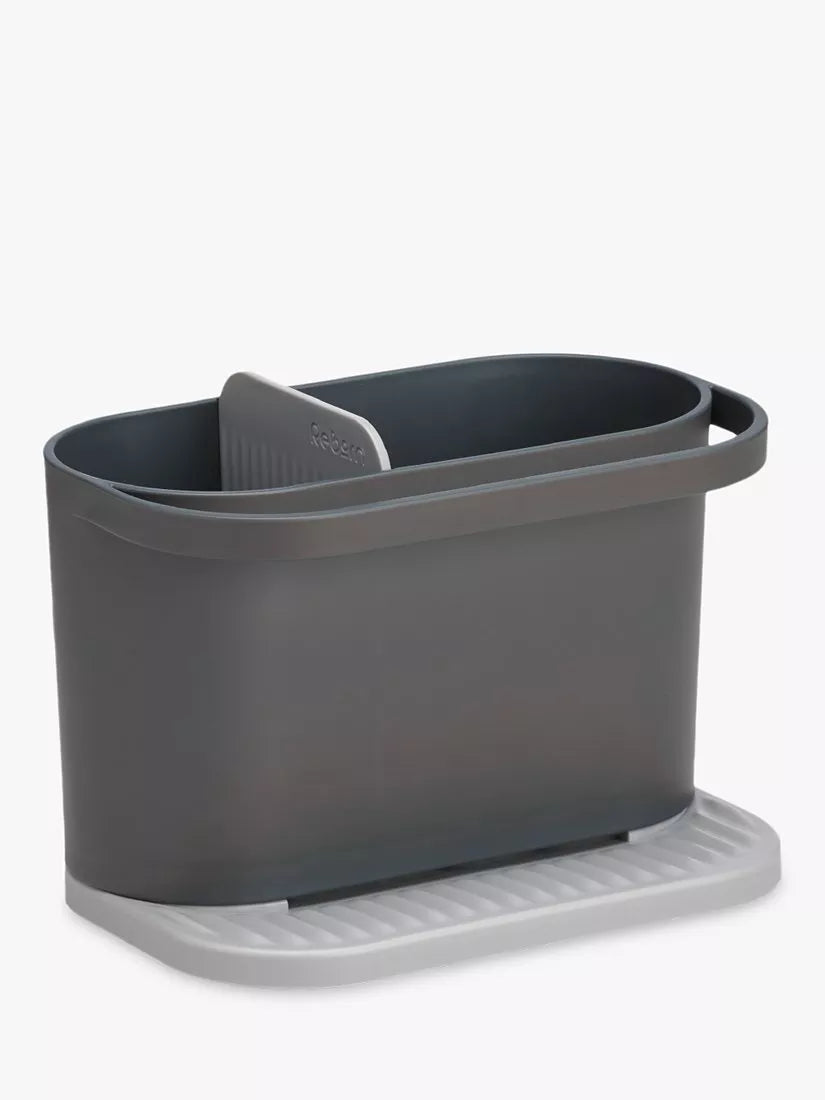 An elegant and space-efficient way to organise your sink area, from ReBorn. The main compartment is divided into two parts and it's large enough for a detergent bottle and brush. The integrated rail is perfect for hanging damp dishcloths.