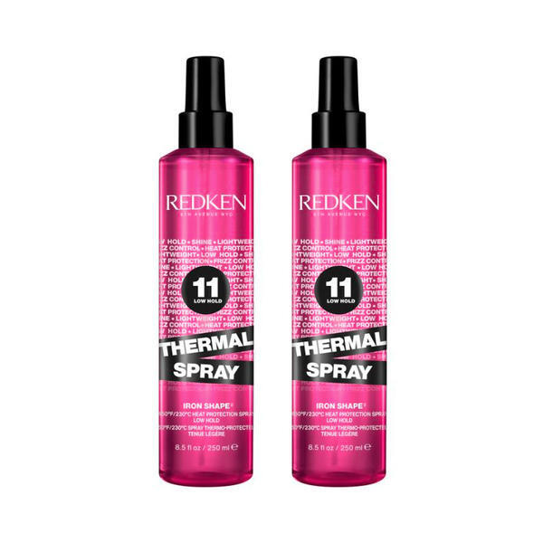 - Redken Thermal Spray protects and repairs hair from thermal damage. Key Benefits: Heat protection 230°C 24 hour frizz protection Increased shine Bottle made from recycled plastic (excluding pump and cap) With a lightweight formula, this heat protector protects hair from up to 230°C and is suitable for all hair types. Frizz is reduced and hair is left with a glossy shine for that salon