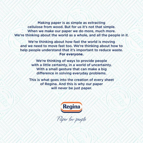 More than just paper… Every sheet of Regina Blitz kitchen rolls is a commitment to making your life that little bit easier and support for those who believe in a greener future. For over 30 years, thanks to the strength, softness and quality of our home and personal care paper products, Regina is still at the heart of homes across the UK and Europe today.