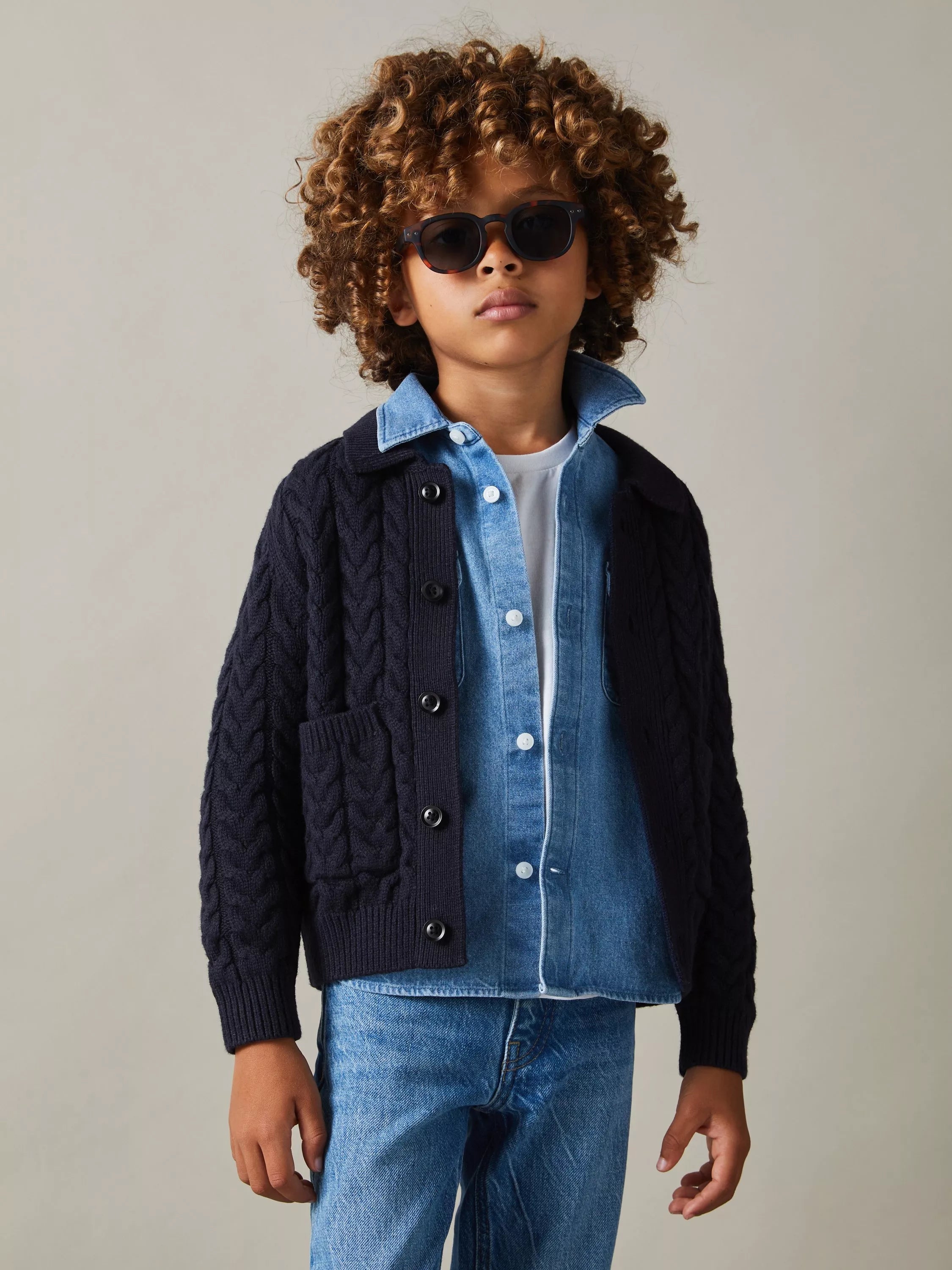 Smart layering at its finest. Made from a supersoft blend imbued with wool, this collar neck cardigan from Reiss features cable knit detailing, patch pockets and a button up front.