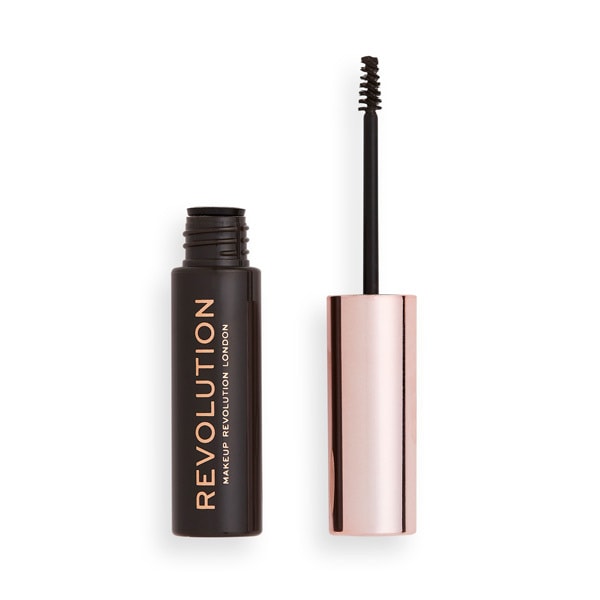 The classic Revolution Brow Gel in Dark Brown is formulated with nourishing avocado oil for application. This essential cosmetic helps set and define your eyebrows throughout the day. It is a key item for achieving a polished look.