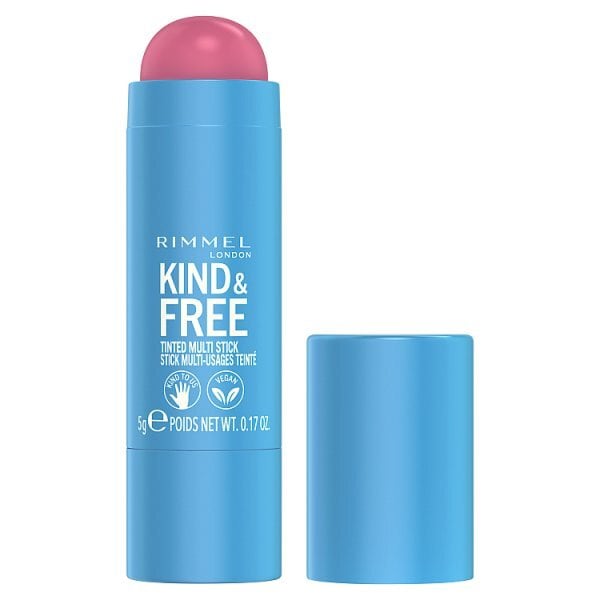 Achieve instant, buildable colour quickly with the Rimmel London Kind & Free Multi-Stick. This versatile product functions effectively as both a cream blush for cheeks and a hydrating lipstick for the lips. Enjoy highly pigmented colour delivered via an intensely moisturising formula.