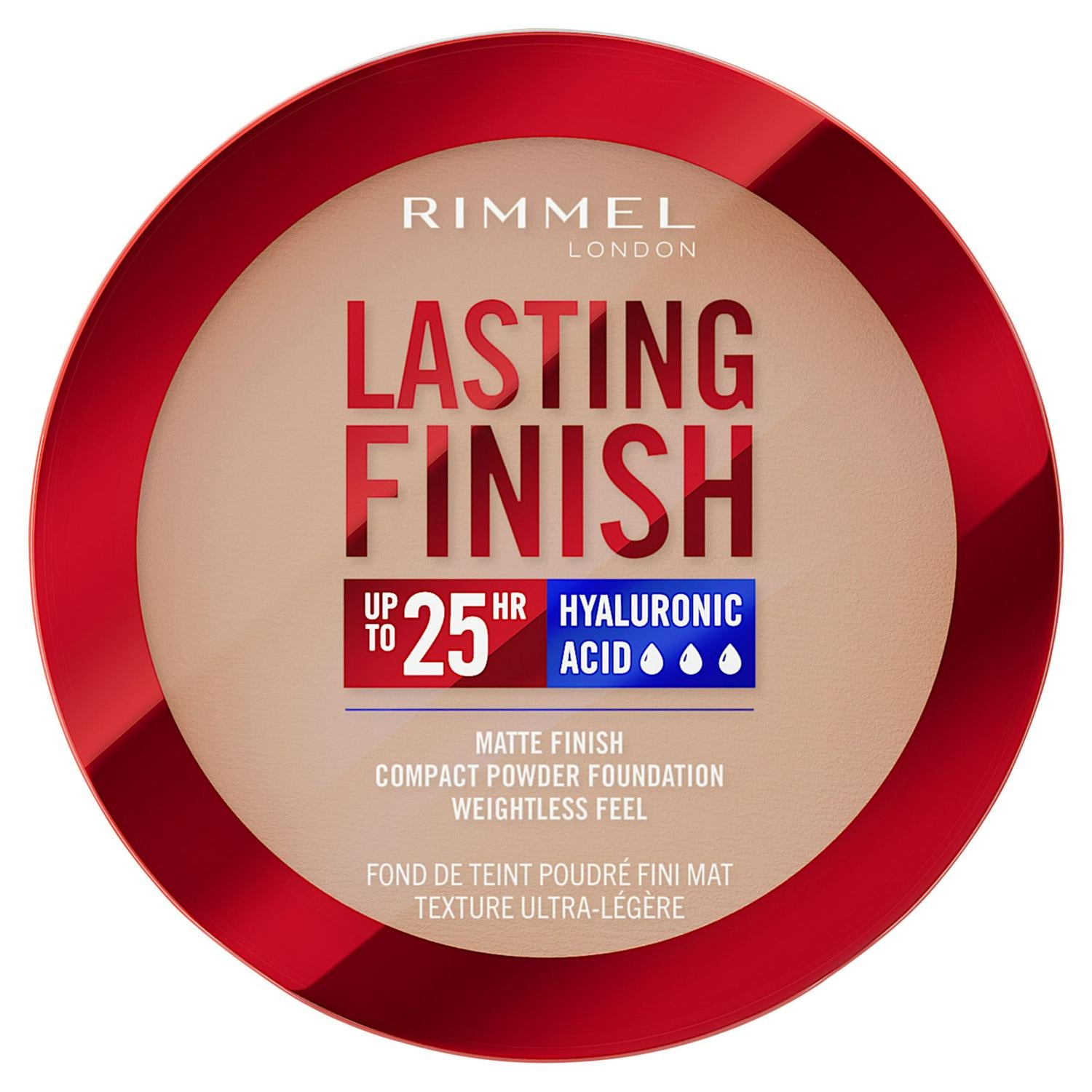 Rimmel Lasting Finish 25hr Compact Foundation is matte, full buildable coverage powder foundation with a real-skin soft-focus finish. The velvety powder-to-cream texture absorbs excess oil & covers any imperfections. Formulated with Anti-pollution shields & UV boosters to help protect skin with SPF20 & Hyaluronic Acid. It comes in a convenient compact container with pressed powder for easy on-the-go make-up refresh.