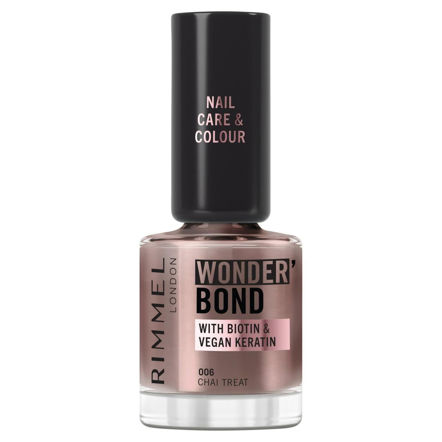 Bonding Nail Colour and Care - Strengthens in One Swipe Elevate your nail game with Rimmel Wonder' Bond Nail Polish - your new 2-in-1 care and colour essential. Infused with Biotin, Vegan Keratin, and Argan Oil, this formula doesn't just deliver a glossy finish - it strengthens, nourishes, and revitalizes your nails from the very first swipe. Buildable pigments offer a polished everyday look, while the breathable formula helps nails feel stronger and appear visibly healthier over time. Available in a range of sheer nude shades, perfect for achieving a natural, clean-girl mani in just two swipes. Plus, the wide brush ensures smooth, effortless application - no mess, no fuss. Nail Your Look with Rimmel Wonder' Bond!